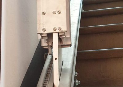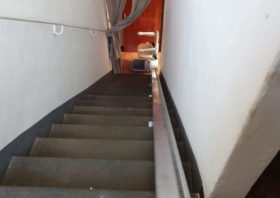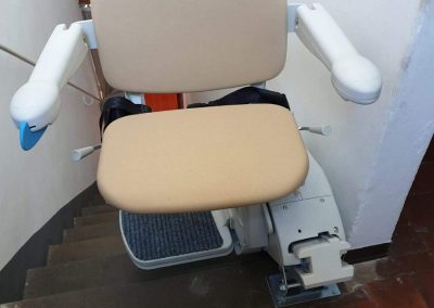 L’esempio in questione prende in considerazione l’installazione su una scala dritta (rettilinea) di un classico montascale a poltroncina rettilineo. Questo tipo di montascale a poltrona viene tipicamente installato su una scala con una rampa dritta ed è dotato quindi di una semplice guida rettilinea.